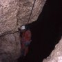Naslednja akcija je bila enodnevna, ko smo prenesli še nekaj opreme na -150m in vse pripravili za naslednji skok v globino. Tokrat jo je zakuhal Barletov Bojan, ko se je šele pri preoblačenju pred jamo spomnil, na lepo zvit kombinezon, ki pa je na žalost ostal doma. Je pa zato imel v nahrbtniku kar dva plezalna pasa in je na vhodni vertikali, oblečen v podkombinezon, napravil celo študijo o razliki med Petzlom in Alp Designom, medtem ko smo z Marinškom in Pircem povedali kar nekaj pikrih na račun njegove pozabljivosti, saj smo po ozkem meandru tovorili še njemu namenjene transportke.
