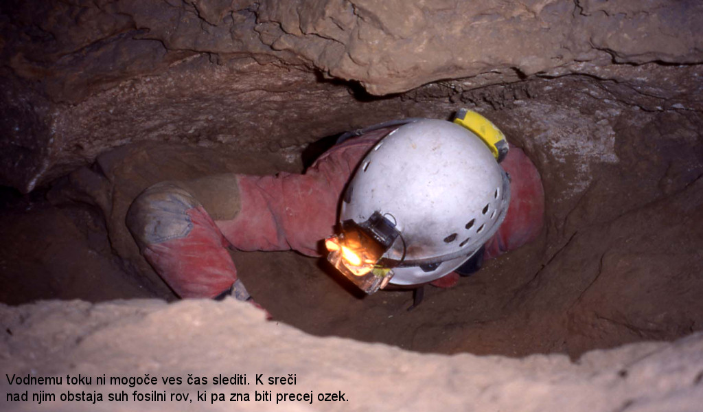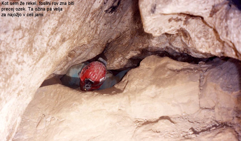 Želeli pa smo si še globlje in v začetku leta 2002 nam je uspelo najti prehod v podoru na dnu jame. Pobudo pri raziskovanju novih delov smo zopet prevzeli Postojnčani, ki smo v naslednjih dveh akcijah, s pomočjo jamarjev iz drugih klubov, jamo opremili, raziskali in izmerili do sifona na –1533 m.