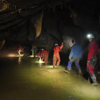 Zaradi velikih nalivov v četrtek in petek in celo poplave v petek popoldan, je bil Modrijanov pohod pod vprašajem. V soboto dopoldan je imela Lokev sicer nad povprečen vodotok, a je bila nazaj v svoji strugi. Na naši običajni poti v Vzhodni rov smo se zaradi zelo zdrsljivega terena ustavili takoj po spustu za Črno dvorano. Glede na to, da smo imeli dovolj časa, smo si šli ogledat še Zahodni rov kjer pa nas je narasla voda ustavila v Rjavi dvorani.
