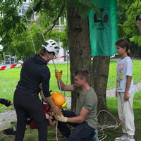 Po nekaj letnem premoru smo se zopet udeležili sejma nevladnih organizacij. Rezervirali smo si mesto v parku, kjer smo izkoristili drevesa za napeljavo žičnice in plezanje po lestvi.