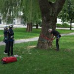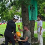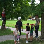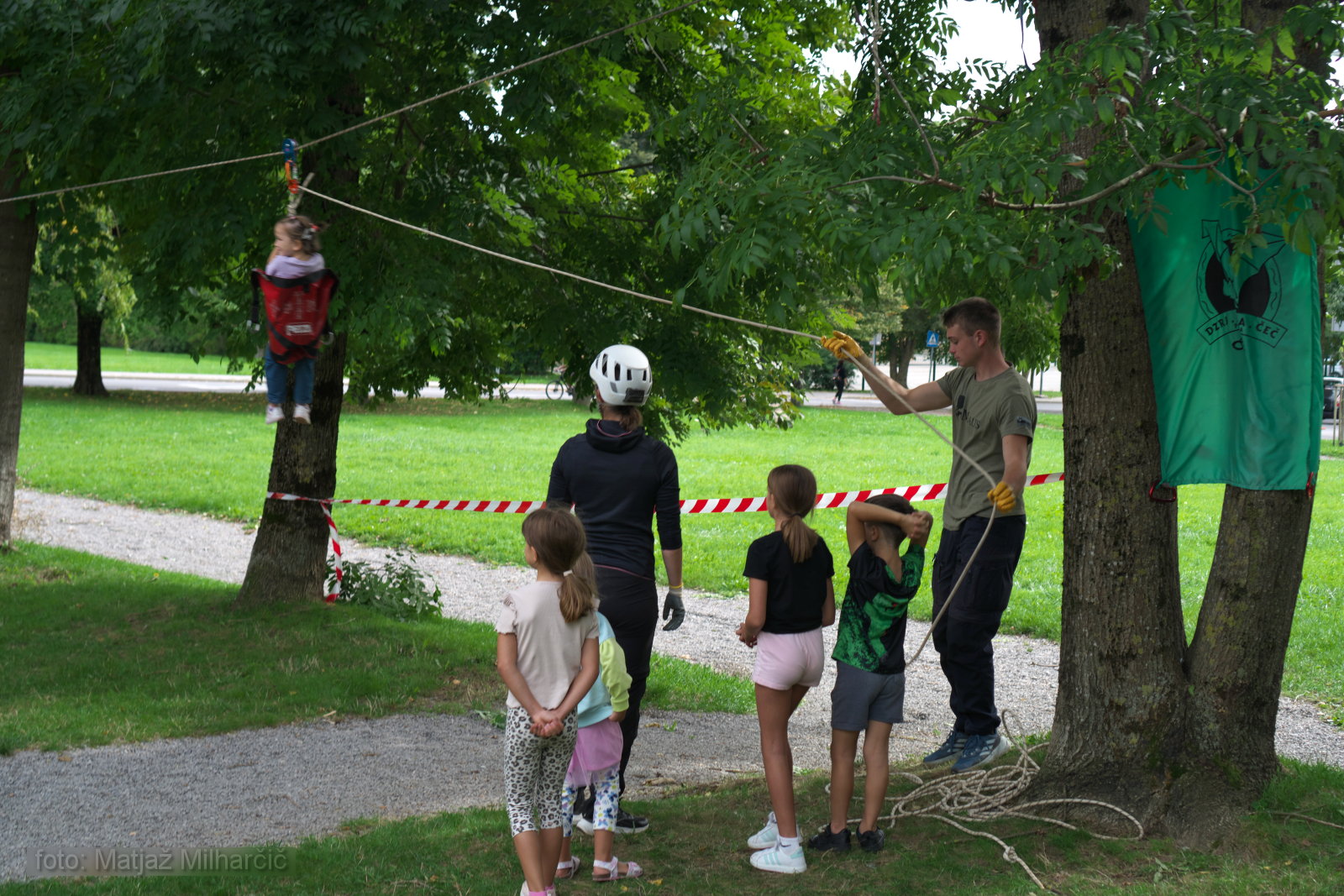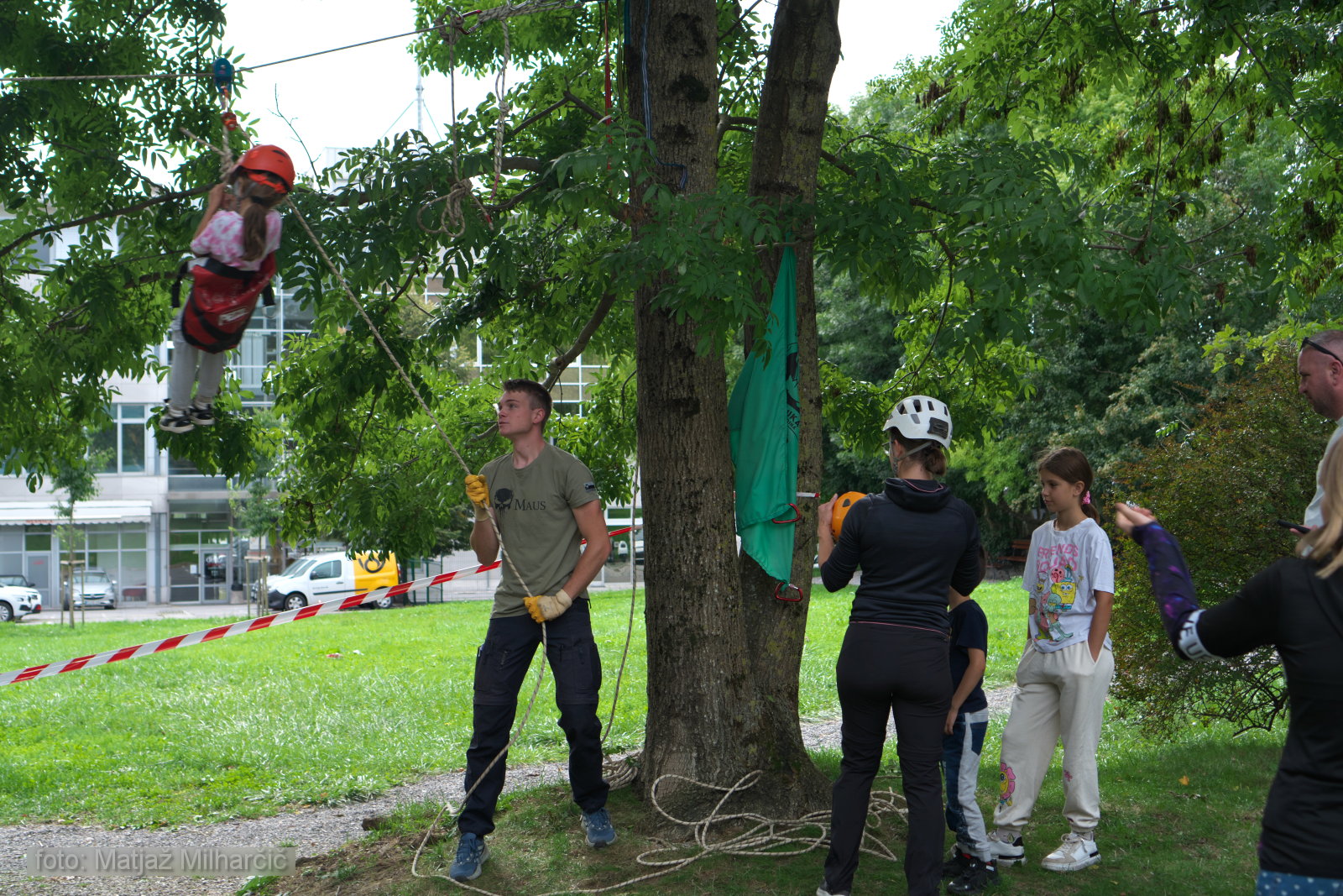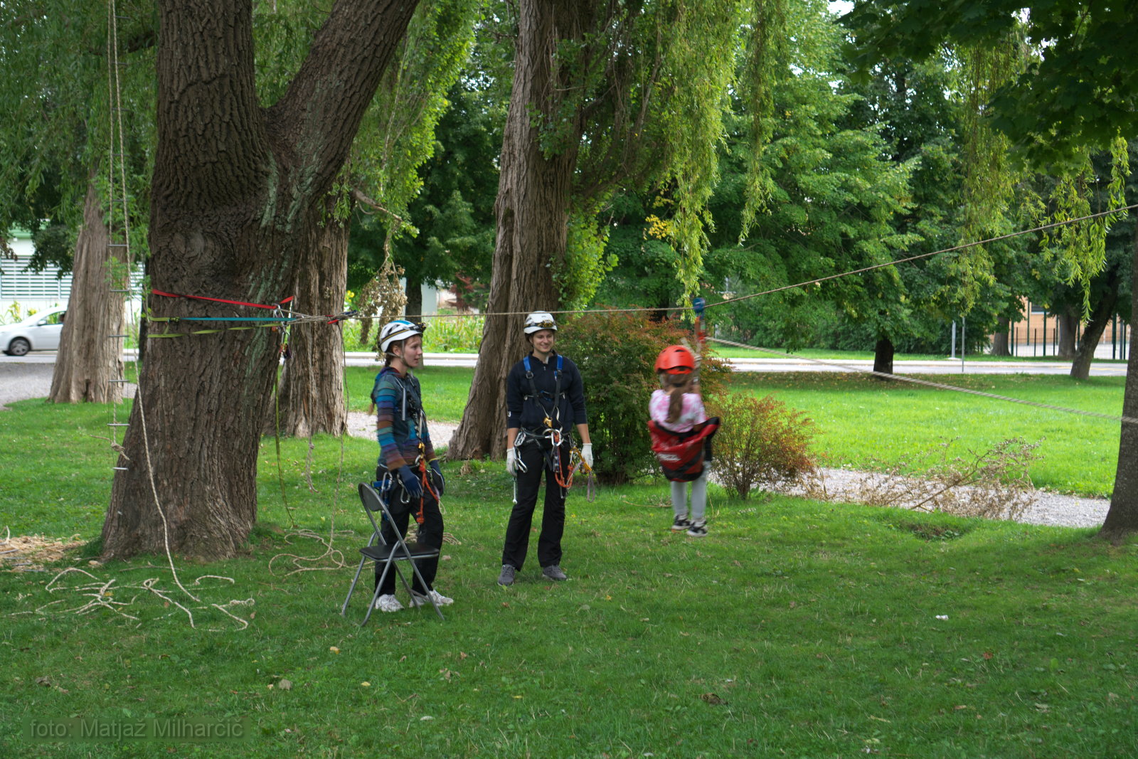 Po nekaj letnem premoru smo se zopet udeležili sejma nevladnih organizacij. Rezervirali smo si mesto v parku, kjer smo izkoristili drevesa za napeljavo žičnice in plezanje po lestvi.