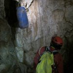 Dan pred čistilno akcijo smo se člani DZRJ Luka Čeč zbrali pri jami, jo opremili in pripravili potrebno za izvlek smeti (škripčevje, sod, vrvi). Naslednji dan smo na dnu 35 m globokega vhodnega brezna zabeležili večinoma ostanke druge svetovne vojne in živalske kosti (pes, kune). V spodnjem delu brezna smo zabeležili bolj prepoznavne ostanke druge svetovne vojne (čelade, naboje, čevlje) ter NUS (neeksplodirano ubojno sredstvo). Pred izvlekom smeti sta se zato na dno brezna najprej spustila član DZRJ Luka Čeč in pripadnik enote za varstvo pred neeksplodiranimi ubojnimi sredstvi ter preverila, ali je v bližini morda še kakšen potencialno nevaren predmet. NUS smo s pomočjo škripčevja in soda najprej izvlekli iz jame. Sledilo je iskanje ostalih smeti ter izvlek le teh. Odstranili smo štiri sode odpadkov – cca. pol kubika smeti, za njihov odvoz je poskrbel Notranjski muzej Postojna.