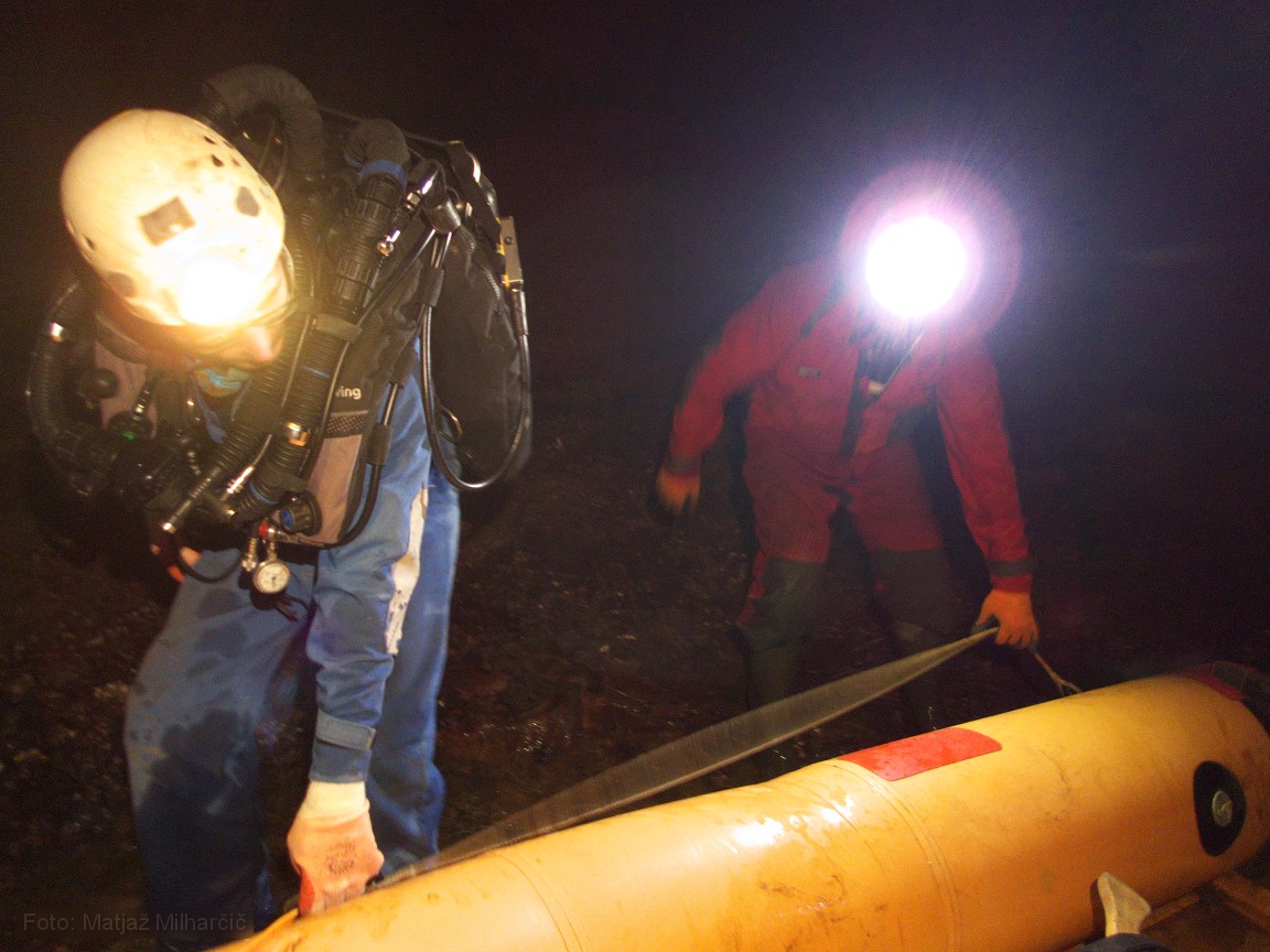 Participants: diver were Sebastjan Gantar and Igor Vrhovec. The support team, to whom the divers thank for all the help, patience and hot soup were: Miran Bedenik, Marjan Vilhar and Matjaž Milharčič from DZRJ Luka Čeč Postojna; Uroš Frlan, Simon Hiti, Tine Žnidaršič, Matej Zalokar, Viki Gornik, Jaka Peteh and Franjo Drole from JD Rakek. This time we also thank JD Planina and IZRK ZRC SAZU for technical support in the form of boats!