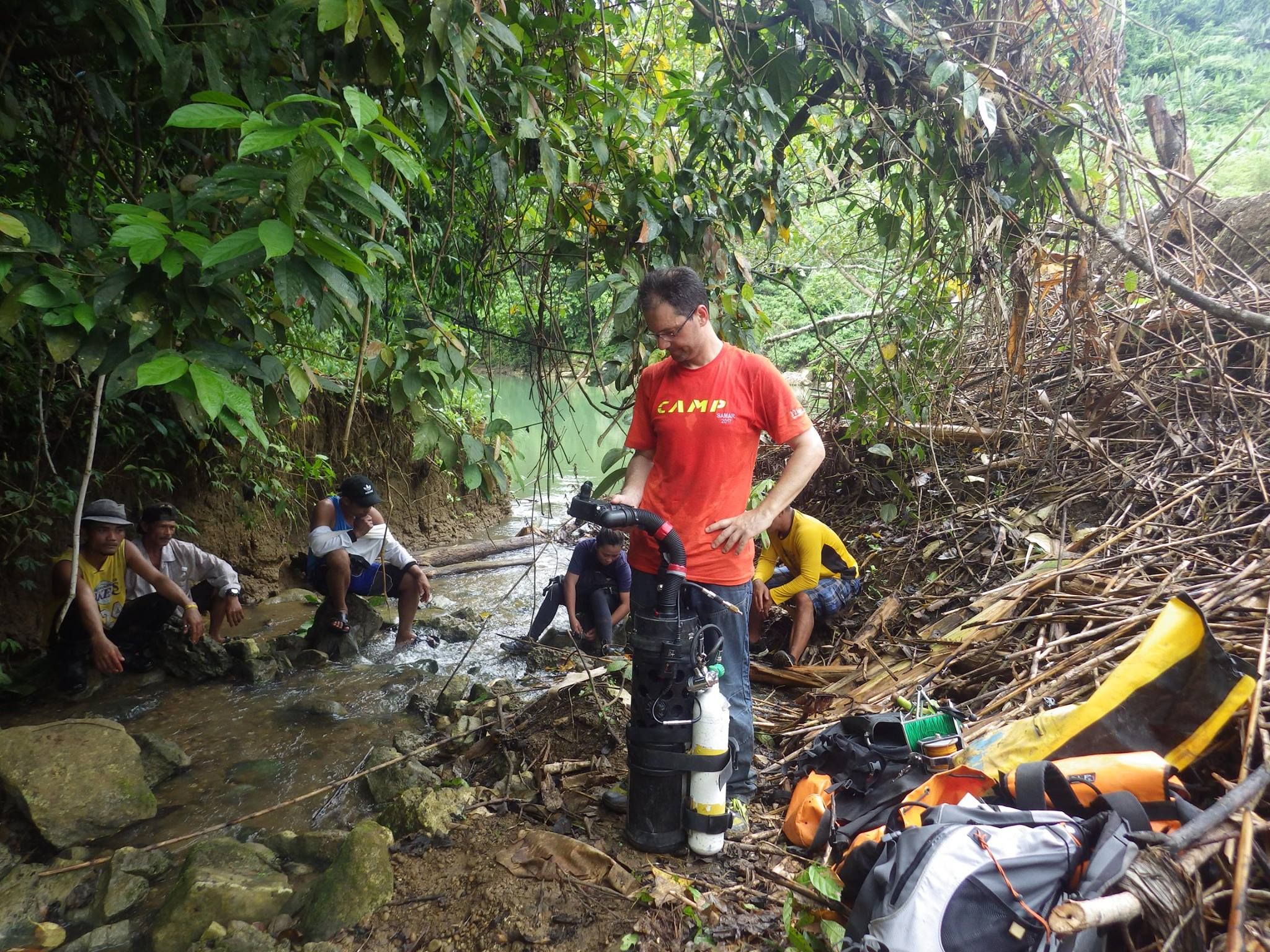 Jamarska ekipa je letela iz Milana preko Abu Dhabija v Manilo. Po večeru preživetem v norem in zanimivem mestu Manila smo odleteli na otok Samar 650 km oddaljen od prestolnice. Na letališču Tacloban so nas pričakali domačini, ki že veliko let sodelujejo pri pomoči organiziranja odprave. Iz letališča smo se odpeljali (z 200 kilogrami opreme, ki smo jo potrebovali za raziskovanje) po dodatno potapljaško opremo, ki je bila skladiščena v podjetju Trekexplorer. Podjetje vodi domačin Jony, ki je začel z vodenimi ogledi jam na tem območju. V mestu smo nakupili še nekaj dodatne opreme, ki jo nismo morali transportirati z letalom saj bi bili stroški previsoki (helij plin, vrvi itd.). Z mesta Catbalogan smo se z loklanimi kombiji odpeljali do vasice Barruz. Pot je bila z prva dobra, asfaltirana 15km pred vasico pa se je pot spremenila v blatni kolovoz in le z težavo smo se prebili do vasice katero smo dosegli v poznih večernih urah. Vasica Barruz je bila dazni tabor ekspedicije. Iz vasice smo peš po džungli nadaljevali še nekaj ur hoje do lokacije jam, ki smo jih začeli raziskovati. Jame so bile že poznane in delno raziskane iz prejšnjih odprav, ki jih je jamarski klub BBG (Gruppo Grotte Brescia) raziskoval v preteklih ekspedicijah. Pri transportu jamarske opreme in potapljaške opreme so nam bili v pomoč lokali nosači »porterji«, ki so nam opremo v času akcij transportirali iz vasi do vhodov v jame. Ekipa je raziskovala jamo Male-Ho in Sulpan. Jamski potapljač Simon Burja je bil tu velik člen odprave saj so njegovi izjemni potopi in raziskovanja sifonov, vodnih rovov pripeljali do novih odkritij in povezav. Dolžina novo odkritih delov je narasla iz 24km na 27, 28, 30 in vse do 32,100m od tega je 4,000m sifonov. Tako je ekipa v dneh raziskovanj na območju Sulpana združila jame skupaj v sistem poimenovan Sulpan - Male-Ho cave in je z 32,100m postala najdaljša jama na Filipinih. Simon Burja je v zadnjih dneh naredil potop v Caledunga izviru to je eden največjih kraških izvirov na svetu po količini vode, ki prihaja na površino. Burja je naredil prvi pristopni potop v izvir saj je območje problematično zaradi upornikov, ki še vedno delujejo na tem območju. Predhodne ekspedicije niso dobile dovoljenja za raziskovanje, območje okoli izvira je še vedno pod vojaškim nadzorom in situacija vasi Brgy Literon je bila napeta. Iz vasice Literon smo potapljaško opremo z petimi nosači, dve uri hoda po stezi transportirali do izvira. Odkritih je bilo 150m nove jame, ki se nadaljuje v masiv, raziskovanje potapljača je bilo oteženo zaradi slabe vidljivosti v vodi.