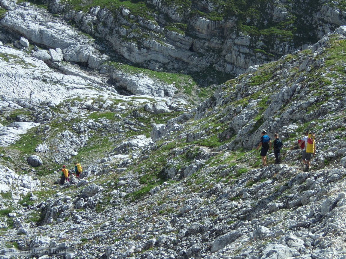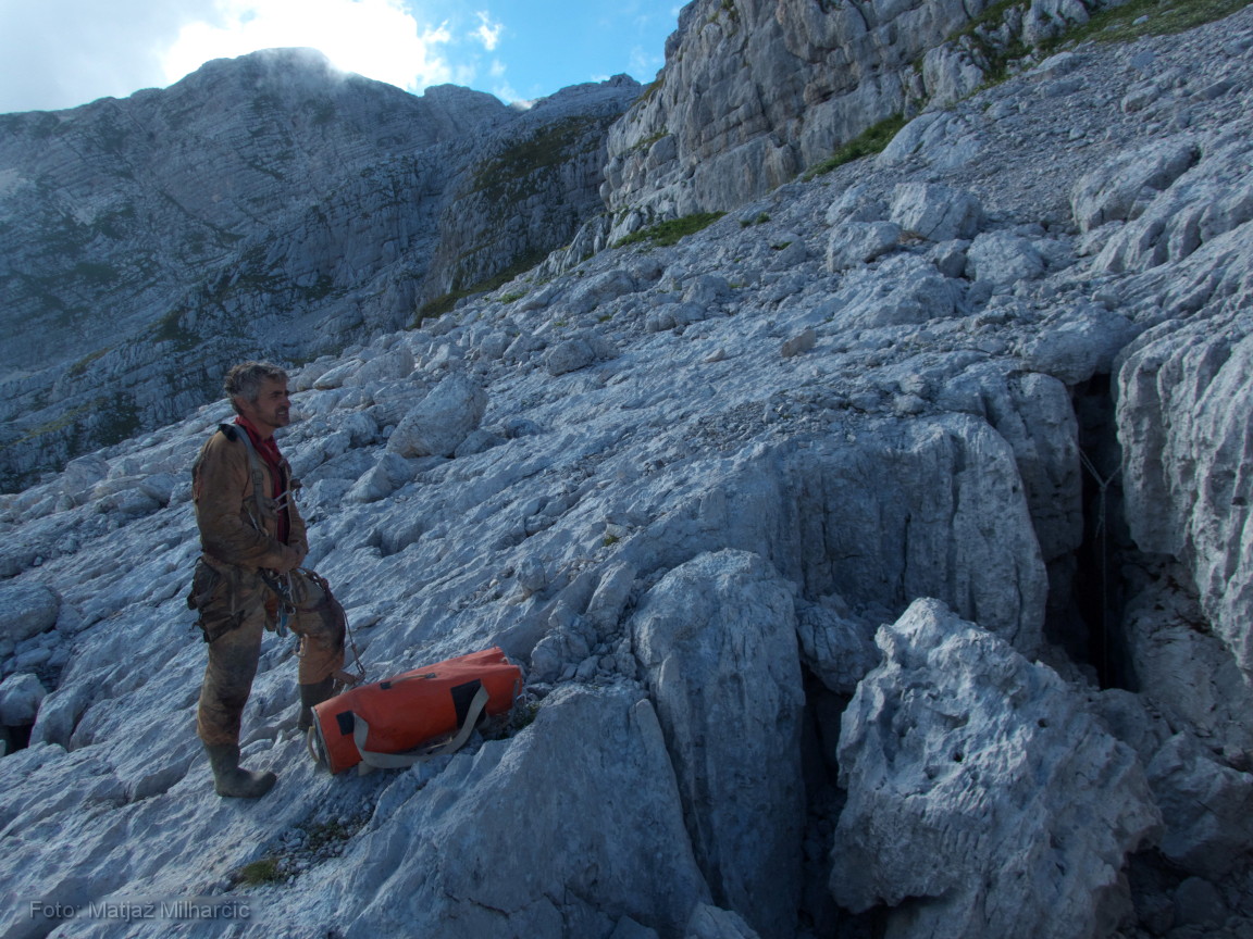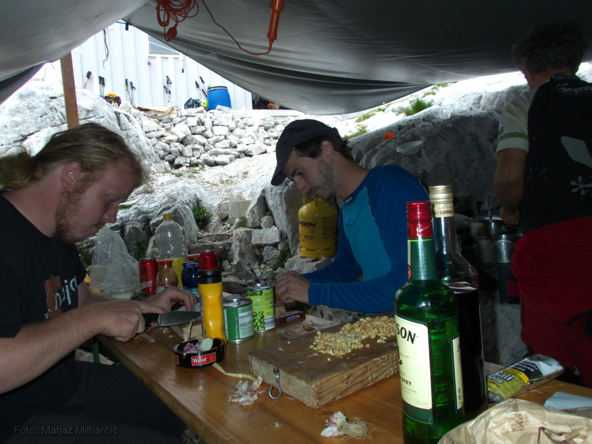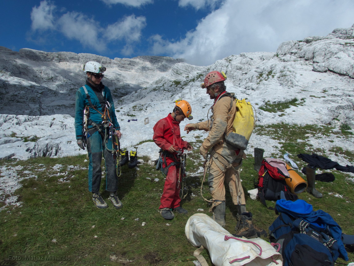 Čas poletnih jamarskih taborov je spet tu in na tistega pri bivaku JZS sva se v četrtek 8.8. odpravila tudi dva člana DZRJ Luka Čeč. Iz Bovca sva se zapeljala do B postaje od tam pa z žičnico do D postaje oziroma smučišča. Do bivaka sva pešačila mimo koče Petra Skalarja kjer sva srečala dva člana DZRJ Ljubljana namenjena v njihov tabor. Zaupala sta nam, da so povezali jami Rene in P4 v enajst kilometrski sistem. Do bivaka sva prispela okrog enih in do konca dneva ni bilo kaj dosti koristi od naju.