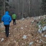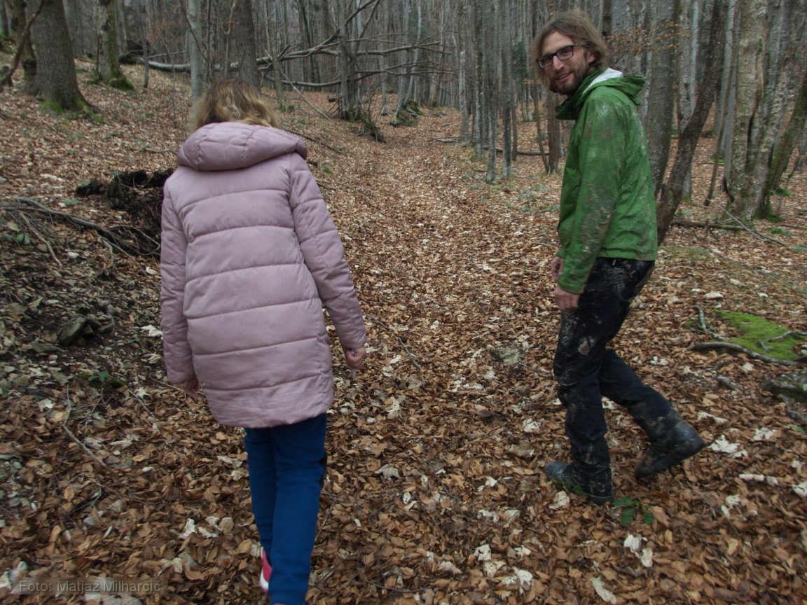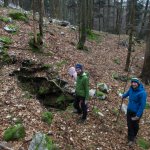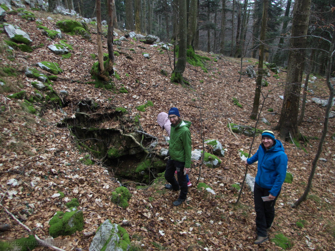Po pričevanju znanca in dobrem opisu lokacije jame smo se v nedeljo 8.12. odpeljali na Nanos nad Rjavo steno, kjer naj bi se jama nahajala. Po dobri uri iskanja smo jo našli. Z vrha ni zgledala nič kaj obetavno, saj se je kakšnih osem metrov nižje videlo zasuto dno.