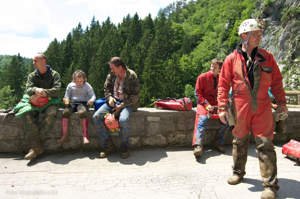 The youngest member of our caving club Tobia Aljaž made a lot of interest for caves among his schoolmates. We arranged a short visit of cave under Predjama castle. Cave guides were: Gogi, Miran, Matjaž, and Izi.