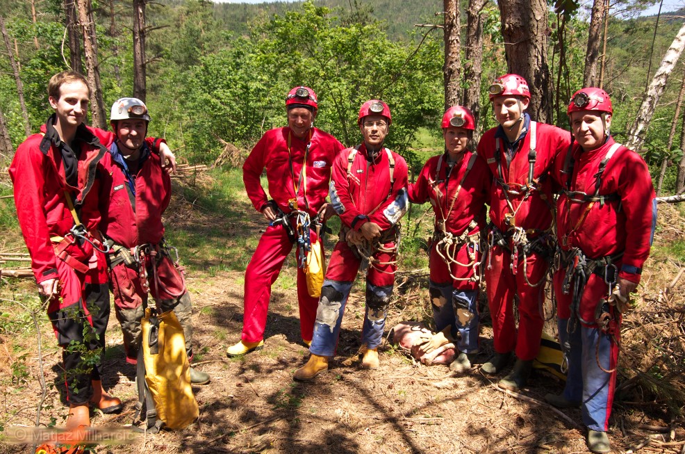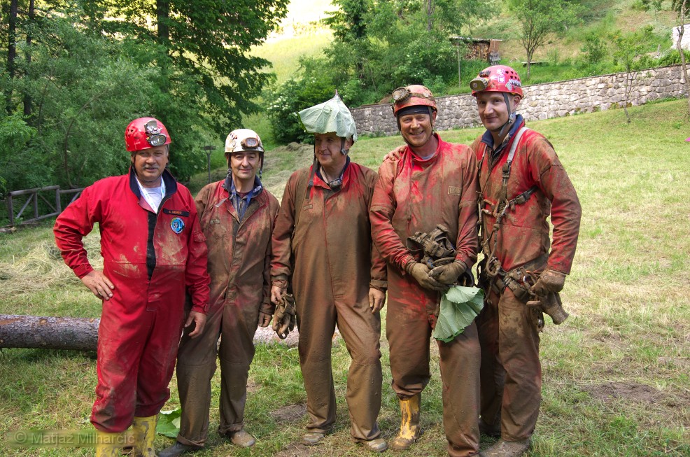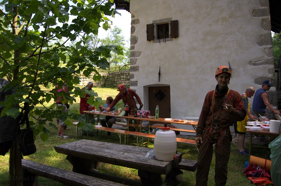 This year we organized hike and picnic for fifth anniversary since we found connection between Bojanova cave and Predjama cave system. Due to sleet aour usual place was inaccessible and we had to move to Predjama. A good number of cave enthusiast attended. Some of us went to the Eastern branch of Predjama cave system while the other group went to Bojanova cave which leads to Predjama cave system. Oddly enough we both arrived to Black hall at the same time and went together out of the cave. After four hours of caving we were anxious to get our hands on beer and čevapi.