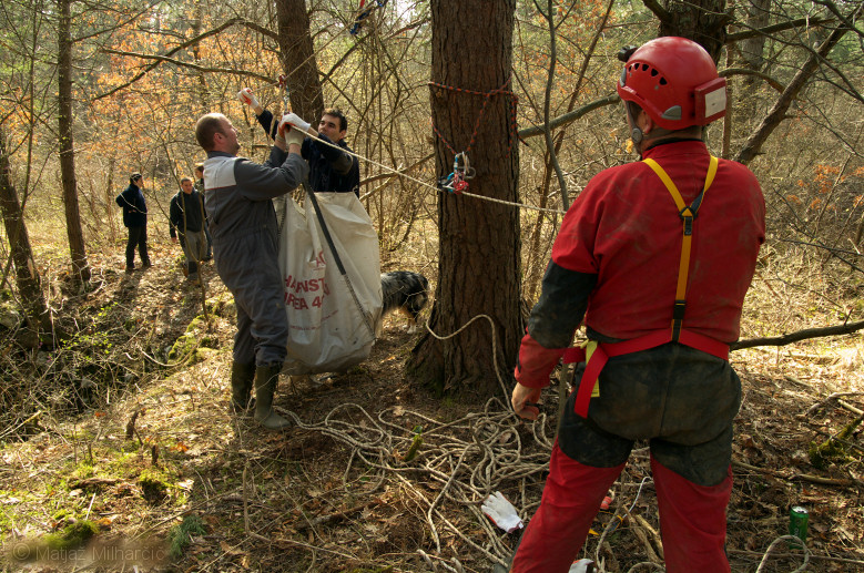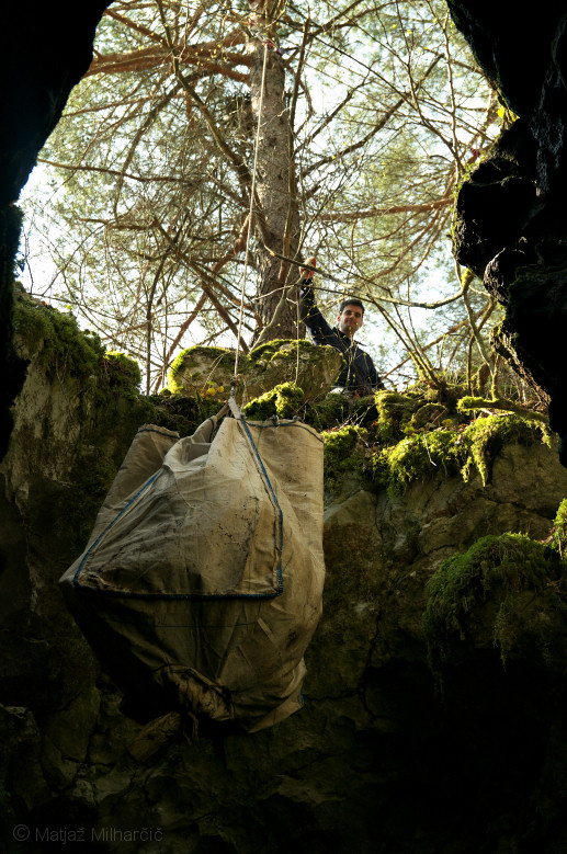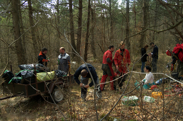 Sathurday 17.4. was a day of nationwide activity called "Očistimo Slovenijo" (Let's clean Slovenia) and members of DZRJ Luka Čeč participated as well. We removed a car trailer of waste. Judging by the condition of waste they've been lying there for quite some time and it appears that there wasn't any new income in past few years. Luckily there were also no hazardous materials amongst waste just glass, cans, tires and household waste.