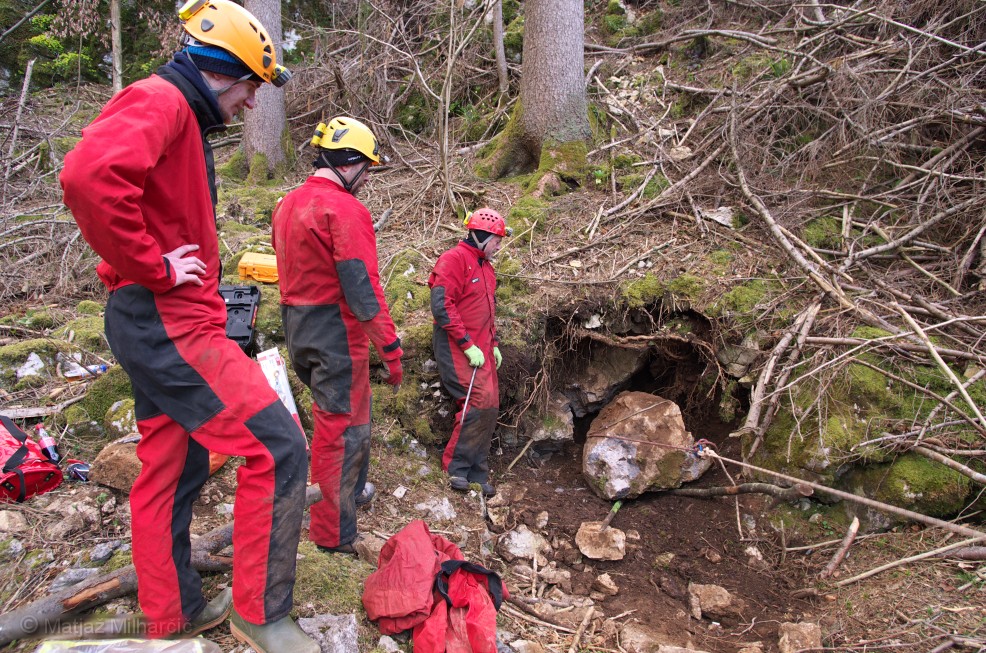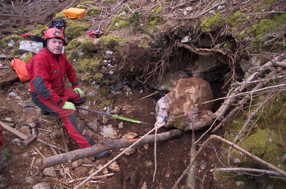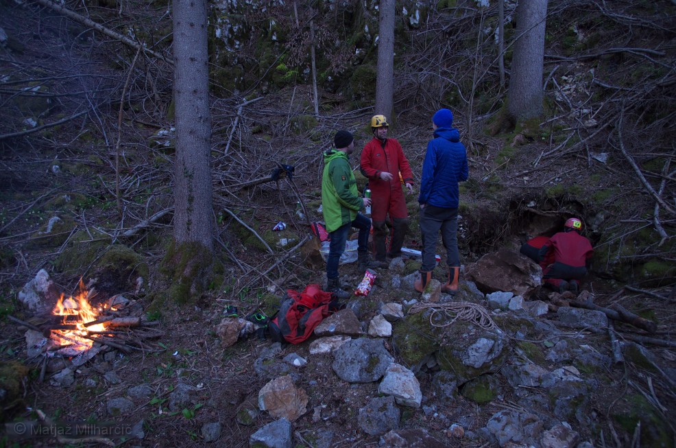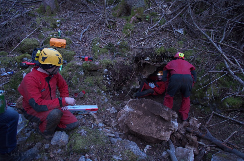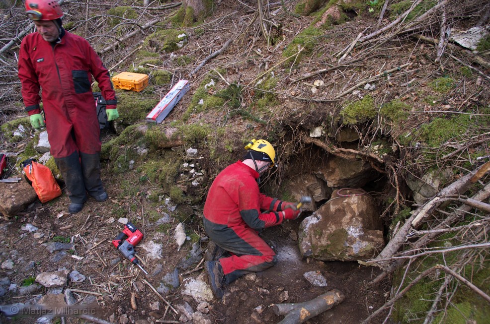 After a long time enough of us gathered to tumble the rocks. Where at if not on Ravnik! We had high hopes for a possible cave hiding behind a large rock. We intended to split it with wedges but we also had plan B.