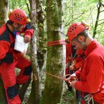 After successful theoretical exam candidates went on to equipment check and demonstrated their knowledge in first aid, cave preservation, installing anchors, knots, documenting and surveying caves, helping injured on a rope and climbing rope ladders. After finished exams they went to cabin in Javne where they received their diplomas and went on with initiations and catering.