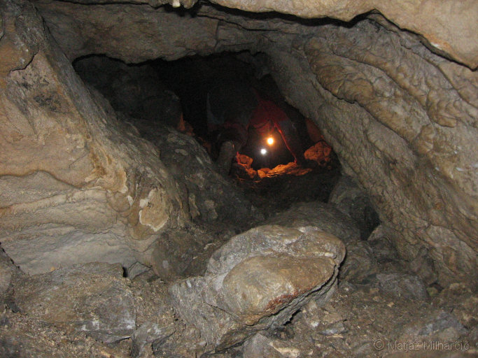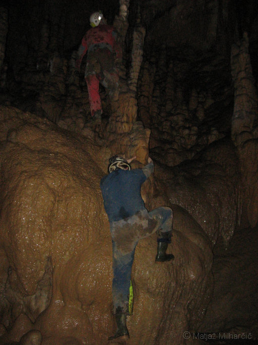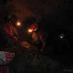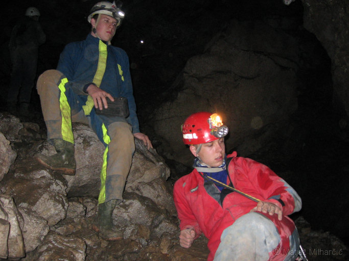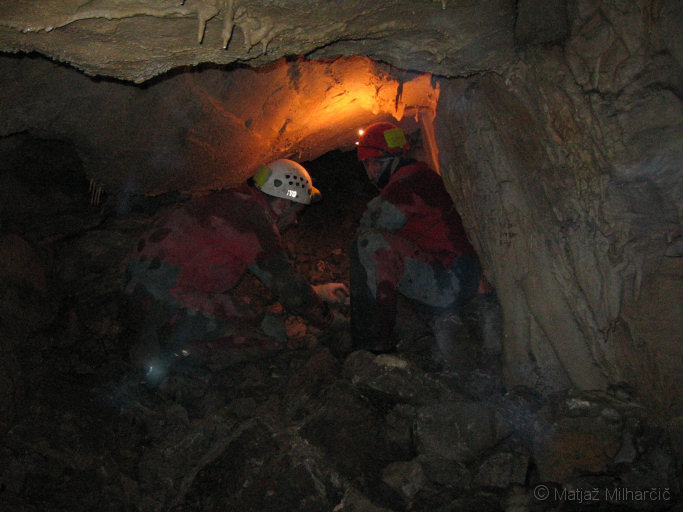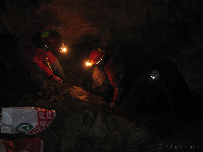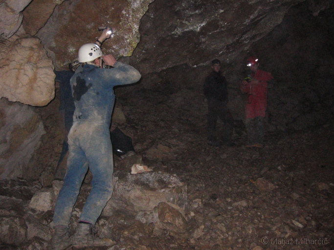 Skale, ki nam jih pred enim tednom ni uspelo, smo umaknili tokrat, ko nas je bilo nekaj več in del jame tudi izmerili.